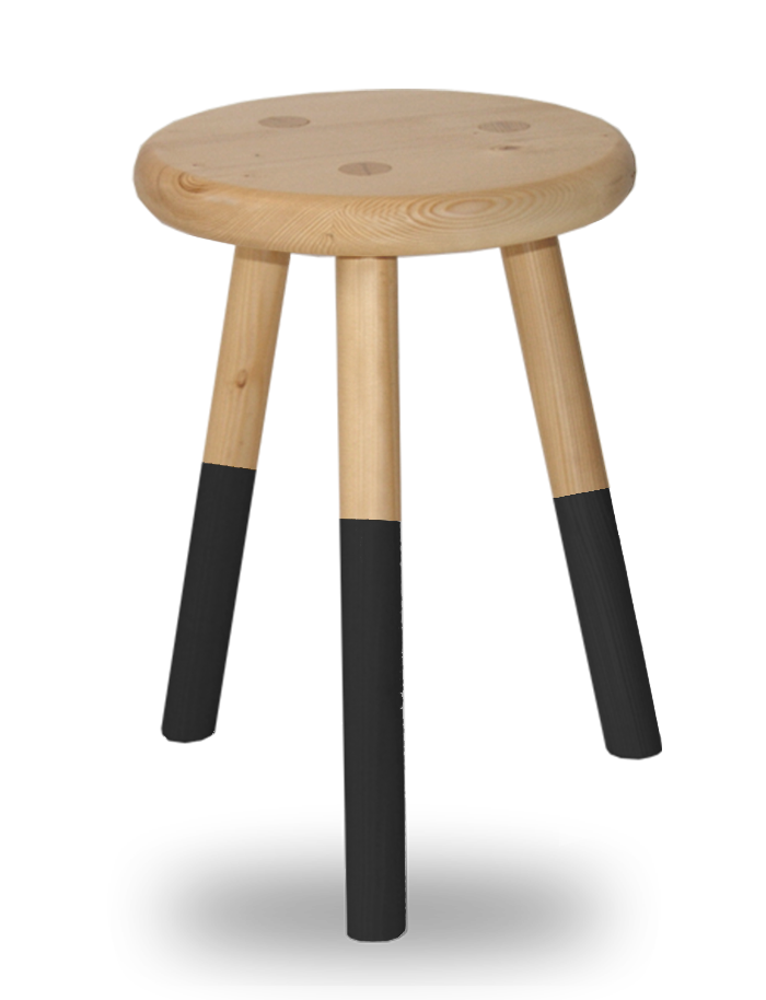 Tabouret bois rond 3 pieds assise noire en sapin massif