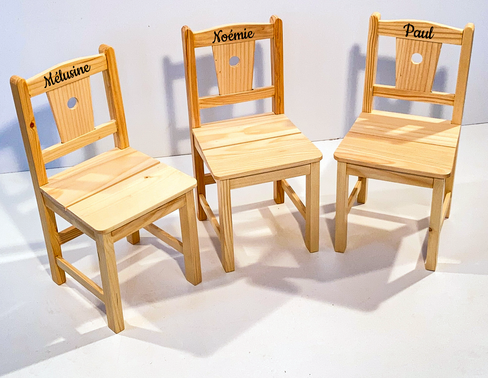 Cette chaise enfant est entièrement fabriquée en bois 100% massif